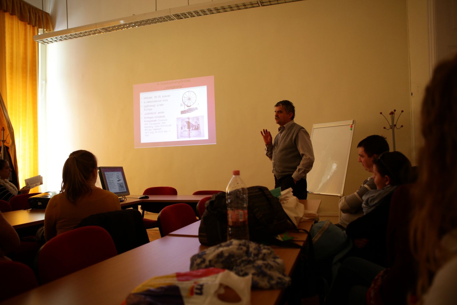 Másnap reggel a szegedi boszorkányperekről hallhattunk sokoldalú előadást Balogh Elemértől, Réka édesapjától, aki a Szegedi Tudományegyetem Állam- és Jogtudományi Karának professzora. Megragadott, hogy magyar ábrázolások nem maradtak fenn az esetekről, de annál több külföldi illusztráció és kép készült ebben a témakörben. Nyugaton boszorkányper több is volt, mint Szegeden, de ez a késői per az 1700-as évek elején egyszerre szedett sok áldozatot, és hirtelen mindenki odafigyelt rá.
