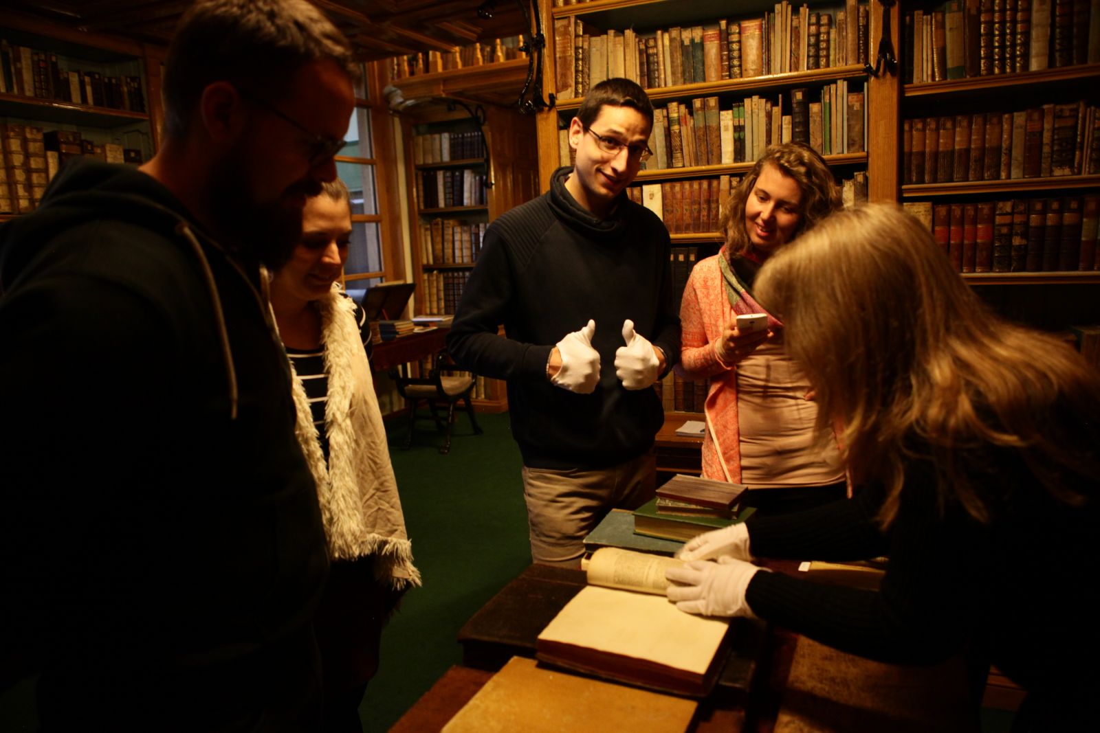 Az előadás után Somogyi Könyvtár, a híres helyi gyűjtemény felé vettük az utunkat. Egy északi stílusú téglaépület, direkt erre a célra épült, nem messze a dómtól, a régi Szeged tengelyében található, az Oskola utcánál. Persze én egy kis kitérővel értem oda, mert ismét elmerültem az egyik téren a gondolataimban, mire a csoportnak már se híre, se hamva nem volt. Megszólítottam az első járókelőt, aki épp egy pedagógiai konferenciára igyekezett, ami pont a könyvtár épülete mellett volt. Jót nevettünk, mert azt hitte, viccelek, mert látott hasonló tanárnőt a délelőtti előadásokon. Beléptem a könyvtárba, és megnyugodtam, amikor már messziről hallottam Dani éles hangját. A hermetikusan lezárt díszterembe gyors léptekkel kellett belépnünk a csoporttal, ez önmagában is érzékelteti a könyvtár régiségét és értékét. Nosztalgikus hangulat fogott el, mintha az egri könyvtárban lennék. Csak ott kódexek nem hevernek az olvasóterem mellett. Nem győztem betelni a rajzolt és festett oldalakkal, bőr- és faborításokkal, és jókedvre derített egy-egy kiragadott oldal a korai pedagógiai könyvekből.