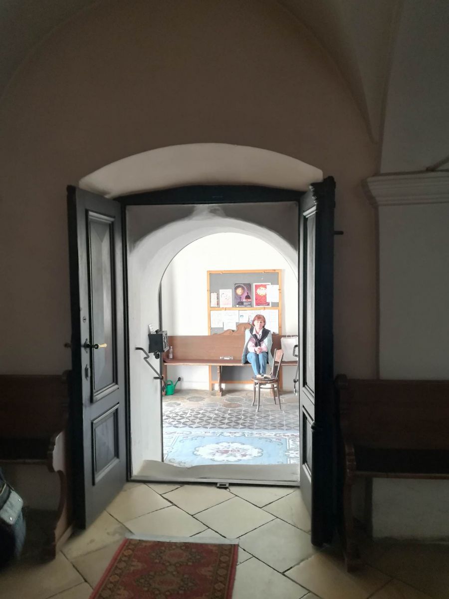A Keresztelő Szent János plébániatemplom kapujában is kedvesen fogadtak bennünket a helybéliek. (fotó: Dósa Judit)