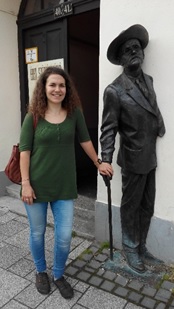 A forróság elől Pula kikötőjéből az óváros falai közé menekültem, ahol a kanyargós kis sétáló utca végén ott volt ő… Magához intett. Egyedül ücsörgött a teraszon az árnyékban, a szemben lévő diadalívet nézte. James Joyce, az ír költő és író itt. Nem is olyan régen még Szombathelyen láttuk egymást. Hasonlóan váratlan és valótlan volt a felbukkanása ismét. Pillanatkép a joyce-i világról. Üdvözölt minden bolyaist, és arra kért, ha netalán Dublinban, Zürichben, vagy Triesztben járnánk, ott is látogassuk meg őt.
